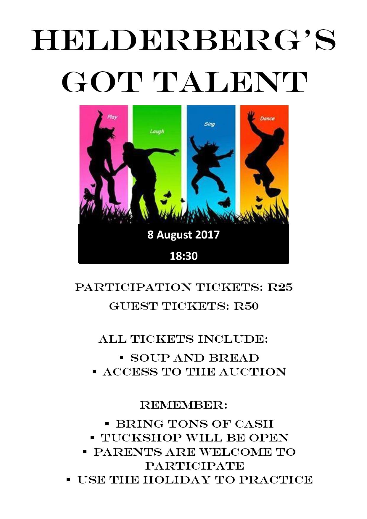 It will take place at Helderberg High School on Tuesday 8 August 2017 at 6H30PM. Megan can be contacted at 071 302 7350